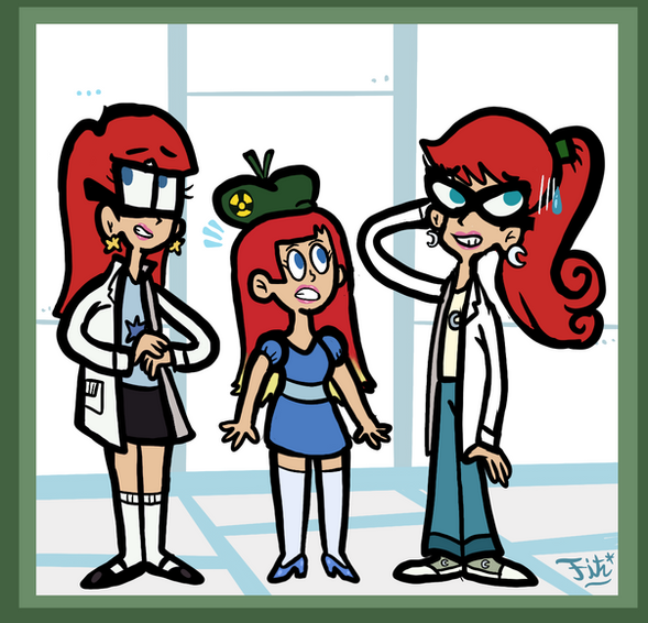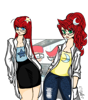 lol, i thought the same thing, its hard NOT to be reminded of dexter with huge black glasses, white labcoats and of course, red hair!