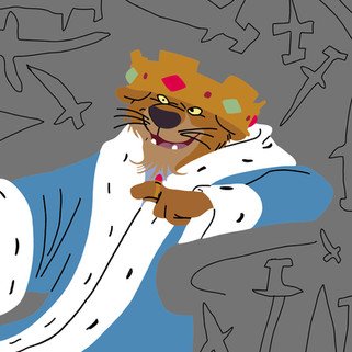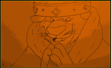Appearance Slender lion, no actual mane, golden jeweled crown, rings with jewels, red and/or blue robe, brown sandals