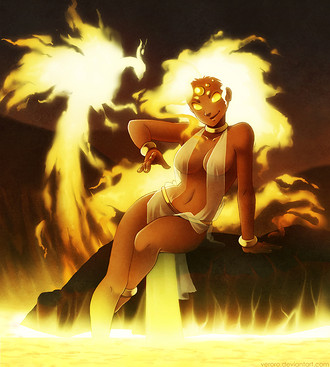 Wow, that is absolutely stunning...loving the fire effects all around and her skin seems to be the perfect match for it.