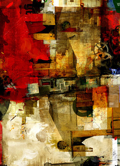 The diversity of color and shape create a pretty deep composition here...I like how it appeals to the eye. Hints at hidden images or pieces of them really draw the eye to different parts of the piece. I like the effect it gives. And the script adds a touch of grace that's familiar but still intriguing. I like it very much.