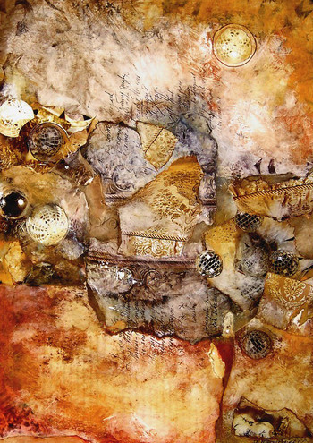 I really like this piece. It looks like it's glowing. Did you write that as well? Does that scrap of paper in the middle have to do with astronomy?