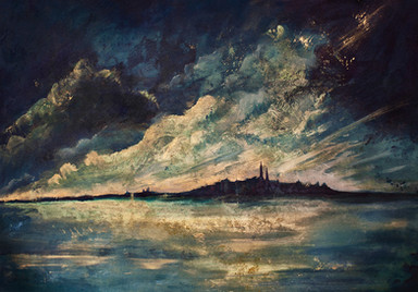 I use oils most often and I must admit that I've never tried watercolours yet (but that's a question of time). On the other hand, the oil is quite diluted with turpentine in this case and used the way watercolours are used, so the effect is similar.