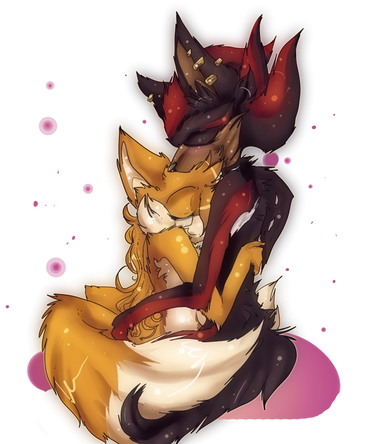 Aw, how cute~ X3 I love the background, it looks so pretty~ *w*