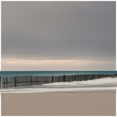 The smooth sea and sand in contrast with the rustic and rough fence work extremely well together. Try to get that effect i more shots.