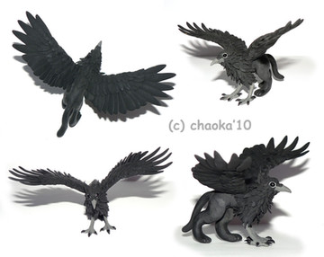 this is a gryphon miniature moddled after the gryphon in the dungeons and dragons monster manual, i made it for an icon for my black gryphon char i got to play hehehe its in dnd miniatures lingo, a large size category creature but still very small as you can see... so i made this at school with my friend then we went home and i finished it at her house then at like what.. 4 am we baked it in the ovan and i painted it at home the next day lolz
