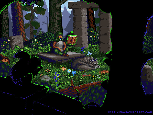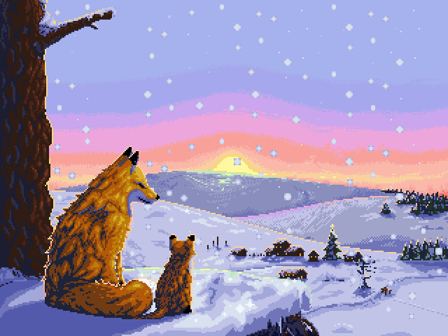 #fantasy #gifanimation #pixelanimation #pixelart #snowflakes #winter #wolf #pixelanimated #vertibirdo