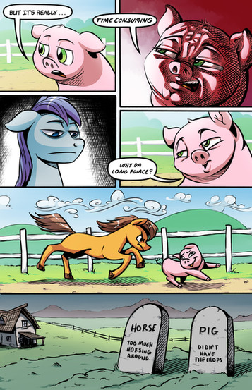 At first, I didn't know what was happening here. I thought, 'the context was missing'. But then, I gave it a closer look and then I saw Apple Bloom's reaction, I saw that Applejack was actually driving a car and the title finally made sense.