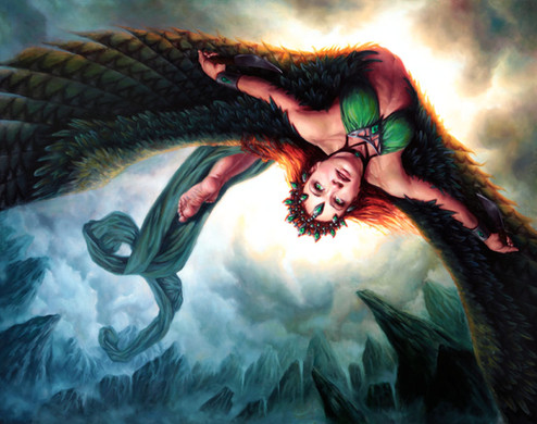 And the depiction of the character is interesting as well. I've never seen a picture of harpy with a pair of hands instead of bird talons before, and it simply looks natural on her.