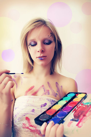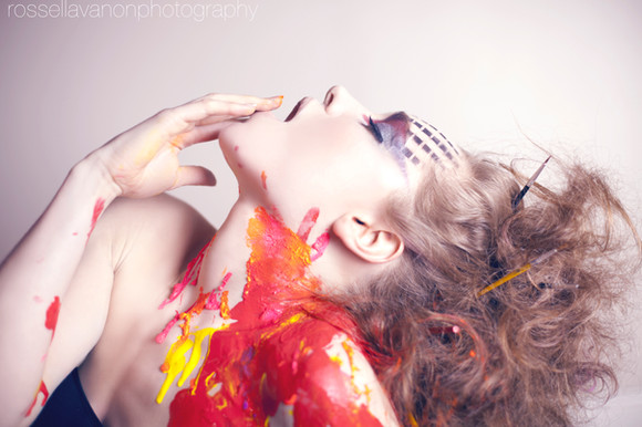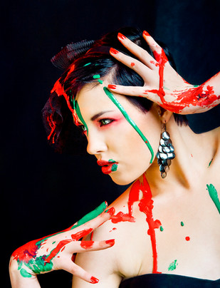 I like this pose a lot. The position of the camera is far enough away to see her clearly in the light. As well I like her paint-masked expression.