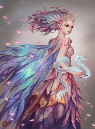 Really pretty! Love the detail in it. The feathers and the branches in the background are great ^^