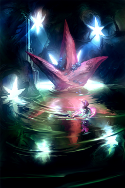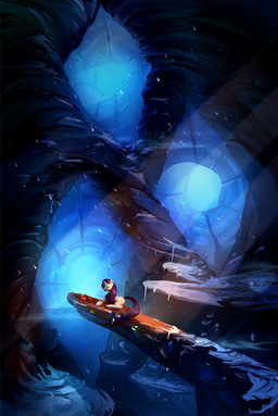 Gorgeous work! I love the quiet and serene feeling of it all as the happy pony contentedly glides through the caverns. The colors and lighting play together wonderfully as the lovely daylight scene gives us a great warm feeling and the two other balloons openings show off the cool and beautiful crystal waters. Kind of neat that the strings for the watery balloons are flora-based, like the central view, while the center's is made of the stream. Nice juxtaposition. Excellent work on the sweet pony herself and her delightful means of conveyance.