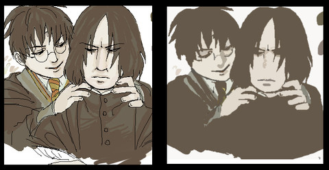 And those last two are him and his schoolboy self, boo ya. Adult!Snape should have gone back in time to beat up the Marauders while teamed up with kid-Snape. And teach the younger version of himself how to tie a tie and not call hot chicks mudbloods, stuff like that.