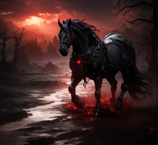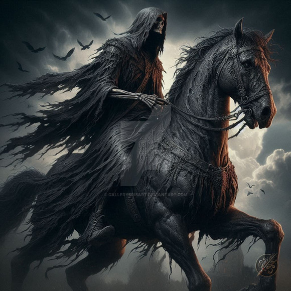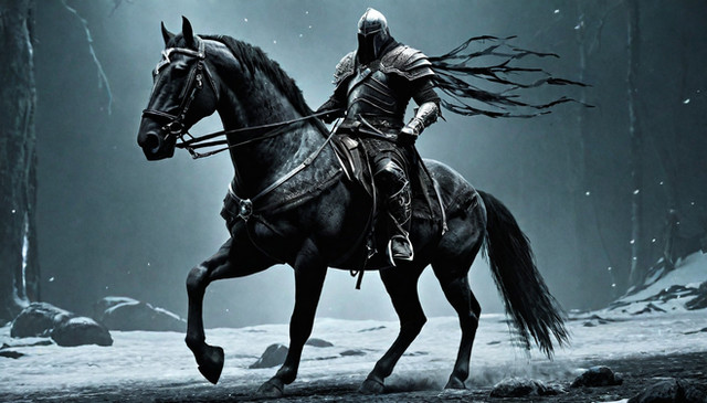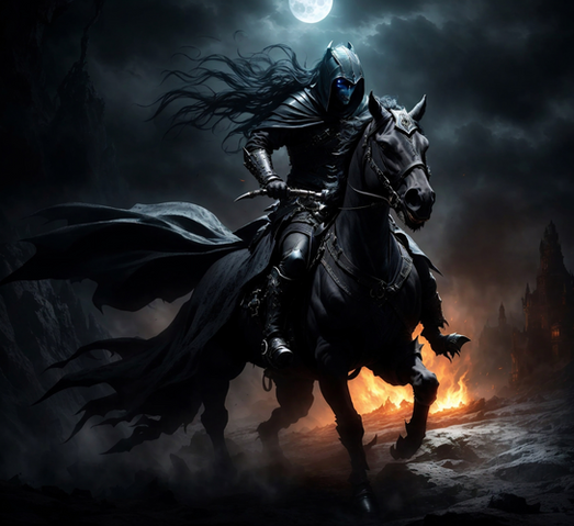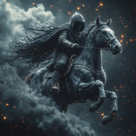 In a realm cloaked in eternal twilight, a haunting figure emerges, riding a horse through shadowed valleys and moonlit plains. The horseman, known as the Faceless Rider, is a chilling enigma, clad in tattered armor and wielding a ghostly blade. Dark powers course through him, defying mortal comprehension. Legends speak of an ancient oath that binds the Faceless Rider to his cursed horse, both cursed by a dark magic beyond imagination. As they gallop through the enigmatic darkness, they leave behind tales of terror and mystery, forever seeking an end to their otherworldly fate. Embrace the dark fantasy and witness the captivating journey of the Faceless Rider and his cursed steed as they roam the twilight realm.Can buy on: www.vestesta.com/bazaar/p/face…