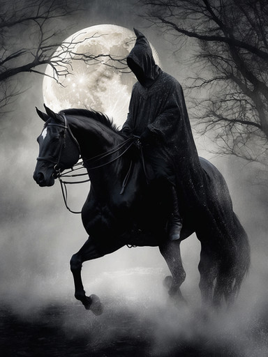 #black #dark #darkfantasy #darkness #faceless #fantasy #horse #landscape #moon #moonlight #night #rider #spooky #steed #tattered