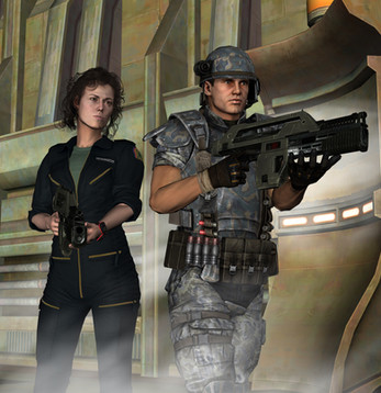 Lt. Ellen Ripley with a USMC standard issue pulse rifle, ready to blow away any xenomorphs that get in her way