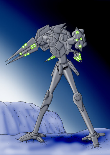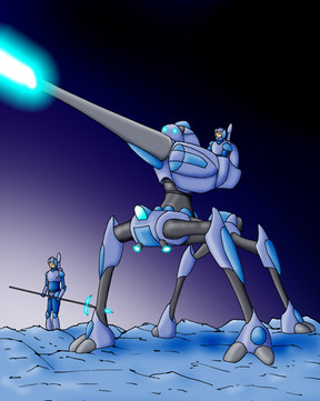 The Terminators are large and powerful constructs of the Cycron Empire. Relentless monsters of firepower, that can engage opponents beyond the horizon and engage directly with targets in visual range. Heavily armoured and excellent cross country capabilities. It is also well shielded against counter battery fire. Only photonic weapons has any chance of cracking one of these monsters open.