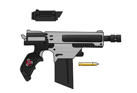 7.62x45 Marksman Rifle. Semi or fully automatic with advanced tactical scope.