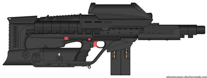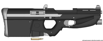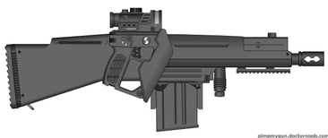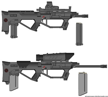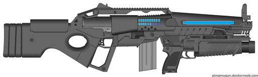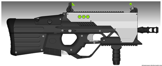 Fully Automatic assault rifle, with a razor sharp combat/assault blade built into the stock.5.56x45 30round box, 75round extended, and 125round twindrum magazines.