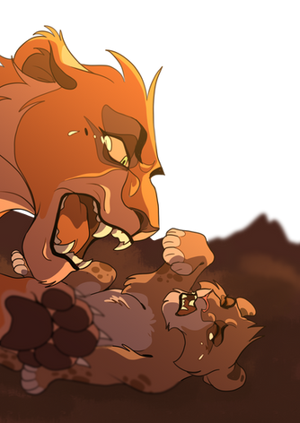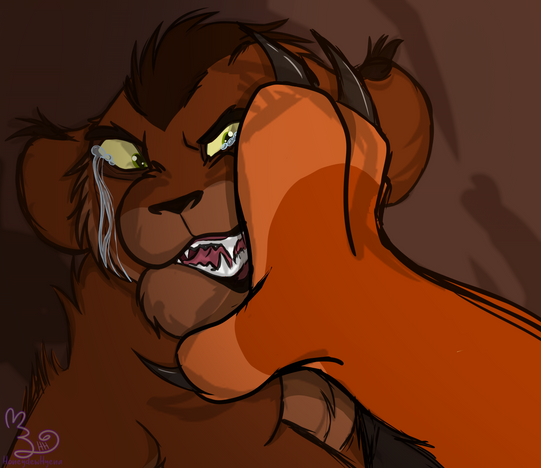 And when he last expected a massive strike pushed him to ground making him bite his own tongue. Disnorteated the young lion tried to move while something or someone has pushing his head against the ground.