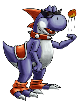 A Resident of Yo'ster Isle who is...kind of a bully, as far as Yoshis go. Brutish, smug and confident, Boshi forces the other Yoshis to pay him in cookies to race against him, but he almost always wins. It takes the combined might of Mario and his pal Yoshi to knock him off his high horse and allow everyone to race together again, wagering cookies to their heart's content. Boshi becomes a little more humble upon his defeat, but only just a little.