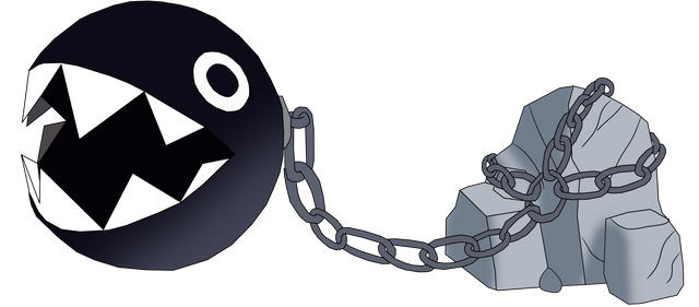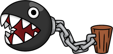 Chain Chomps are large ball-and-chain-like creatures that are usually chained to a post or a wall, though some are shown to be independent of chain or restraint. They possess large, sharp teeth, hence the name "Chomp", and canine-like qualities, such as barking and lunging at people, and as such, are frequently used as guard dogs, mostly by Bowser's army. If Mario were to pound down the post they re chained to, they could go flying off in the direction they are lunging, preferably not upon Mario himself. Interestingly enough, a Chain Chomp named BowWow appears in Legend of Zelda: Link's Awakening.