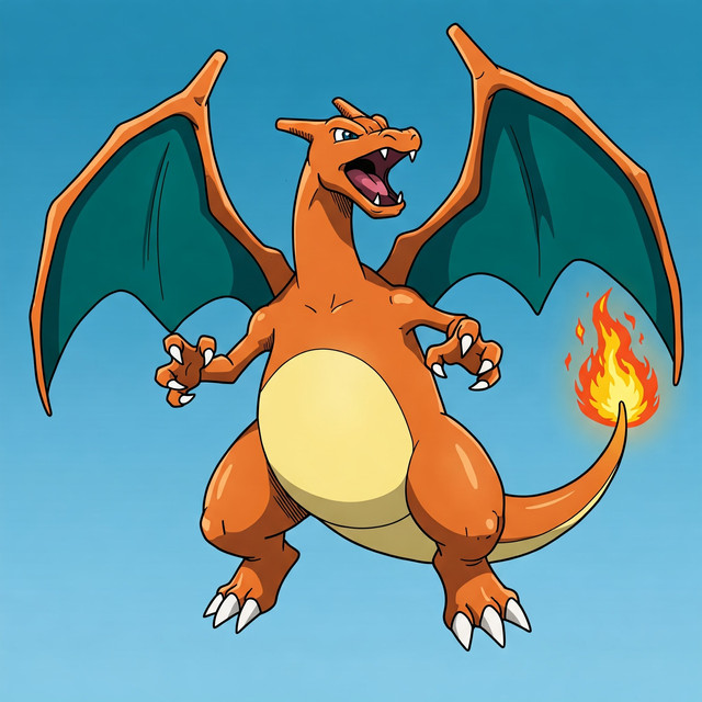 A Flame Pokemon, and the final evolutionary stage of Charmander. Because of the wings it has grown upon evolution, Charizard can fly and use many Flying-type abilities, its wings able to carry it close to an altitude of 4,600 feet. Its fire is incredibly hot, enough to melt boulders, even. Charizard loves to battle with other PokΓ©mon and spends a great amount of time training or looking for opponents. Its competitive spirit is also noteworthy, since it will never spit flames or attack in any manner a weaker foe unless provoked or commanded. Like its fellow Kanto Starter Pokemon, Charizard is able to Mega Evolve and Gigantamax. In the case of the former, it has two forms; Mega Charizard X and Y, and in the latter case, it uses the signature move, G-Max Wildfire.