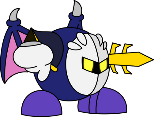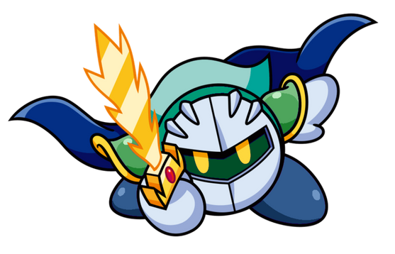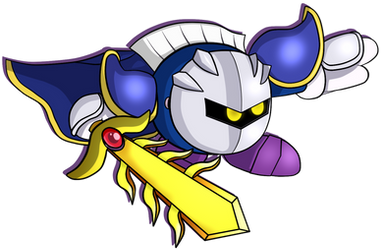 A mysterious masked swordsman who seems to bear some kind of rivalry with Kirby. Meta Knight follows a code of honor, and will hand Kirby a sword so they can duel. He can also transform his cape into a pair of bat-like wings. Meta Knight has made numerous attempts to stop the appearance of the Dark Matter, even standing in Kirby's way to prevent him from activating it without realizing.