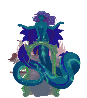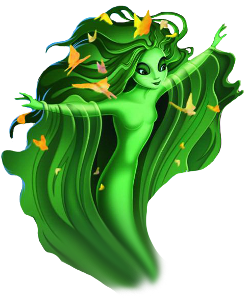A Nature spirit and benevolent force of creation, one that guards and protects the forest and all its inhabitants. One day, her curiosity gets the better of her, with her attempts to make flora grow near a volcano awakening the Firebird, a malevolent force of destruction that proceeds to set the forest ablaze. Heartbroken and guilt-ridden, all this poor being can do is wallow in her sorrow, only to find that her tears can revitalize the forest, and proceeds to pick up where she left off, providing creation as an opposite to destruction.