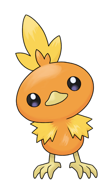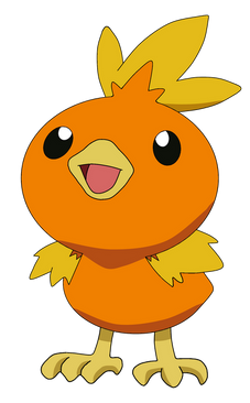 A Chick Pokemon, Torchic is one of the available Starter Pokemon in the Hoenn region. Torchic keeps a flame deep within its belly that can be spit at heats of 1,800 degrees F, but also makes it feel warm when hugged. Torchic follows its trainer with unsteady footsteps and doesn't like darkness, as it can't see its surroundings. Torchic evolves into Combusken, then Blaziken.