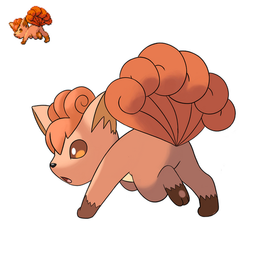 A Fox Pokemon, Vulpix is distinguished by its six beautiful tails. Commonly found in grassy areas, Vulpix has a flame in its body that never extinguishes. It can create wisps of flame that assist it in hunting, but are often mistaken for ghosts. When the temperature outside increases, Vulpix will expel fire from its body to prevent overheating. It will also feign injury to escape from stronger opponents. Vulpix evolves into Ninetales when exposed to a Fire Stone.