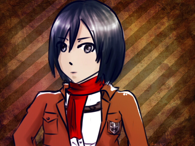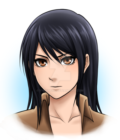 Ahhh, what beautiful purple eyes! <33 She looks just like Mikasa xD Except I like this fan character more than Mikasa! <33 She looks very cool C: