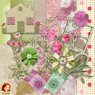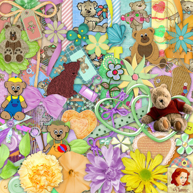 This cute digital scrapbooking kit contains 9 papers and 55 elements, all in 300 dpi.You can find it here: [link]
