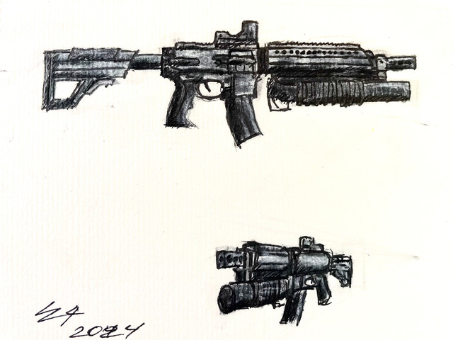 However, it is an awesome drawing. It does take quite a bit from the HK UMP 45... But it's cluttered now. The pistol grip has too many sharp edges and the front guard on it is pointless, only serving to add weight and bulk. The magazine is overly complicated as well (and the mag release is in a bad place). I still like it though, just tone down the technical look of it. - Colt