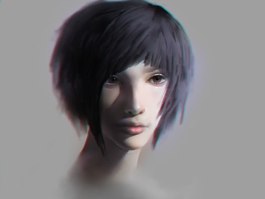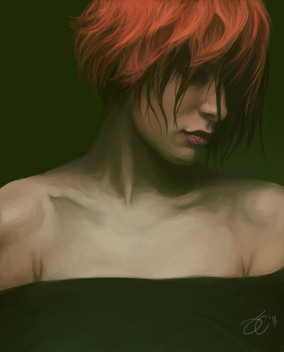 Magnificent. This is by far your best. The lack of clarity works well and your shading is almost perfect. You tend to make your human too bright, making it seem separate from the background. this girl however, is right there.