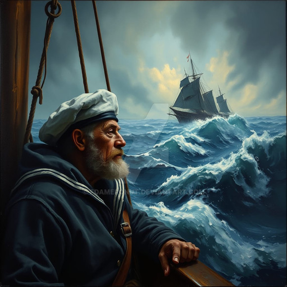 #digitalart #portrait #digitalpainting #drama #characterdesign #sea #ai #ship #storm #stormyseas #voyager