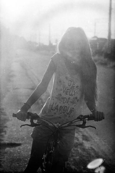 this is my sister enjoying a bike ride.i love how this came out, im really lucky cause i had some issues with my roll of film and alot of the other pictures came out grainy or didnt even come out at all.