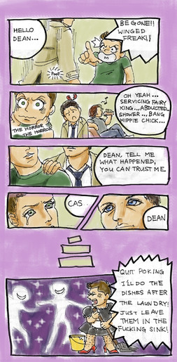 Done for the Let's get gay married comment fic meme over at LJ in celebration of New York State legalizing gay marriage. The prompt was Dean does not like Cas' choice of music for their first dance.Self-pimp: My tumblr .