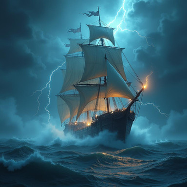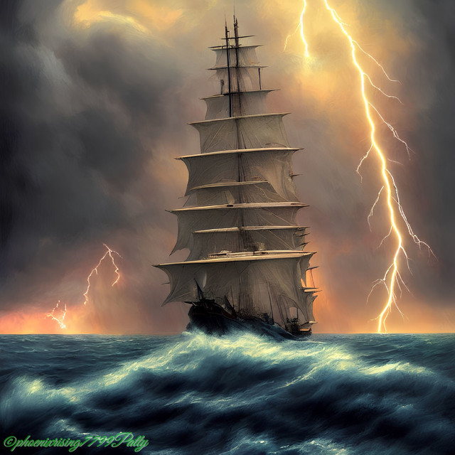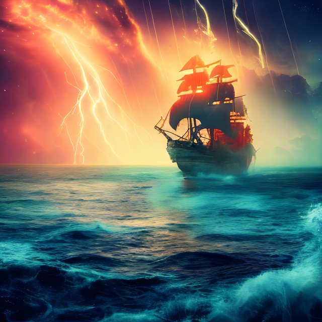 Fan of pirates and lightning. AI tool generated with my secret promptineering skills.I am a new artist with an engineering background and have found a passion for making AI artwork as a platform to open up my imagination.
