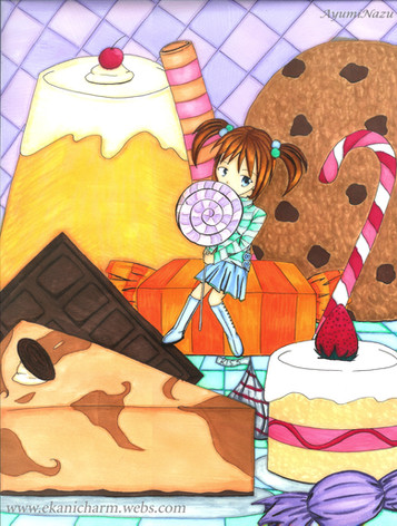 Um...she wanted a picture of a blonde girl surrounded by sweets/candies...and this is how it turned out...