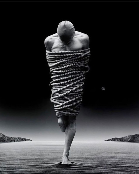 Gorgeous! The concept is absolutely stunning. Such dark, macabre emotion. I love how some of the rope of his visible through the flesh along his ribs and chest. Fabulous effect.