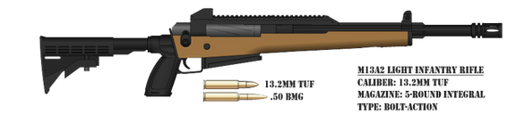 The Liberty Rifle was developed in 1948 by the Springfield Armoury, as a replacement for the US's other non-standardised weaponry, which made heavy use of high grade metals and recently discovered (and expensive) plastics.The Liberty Rifle is an attempt to maintain the US's natural quality in firearms, whilst at the same time lessening the cost of manufacture in terms of financial costs, time, and materials used.