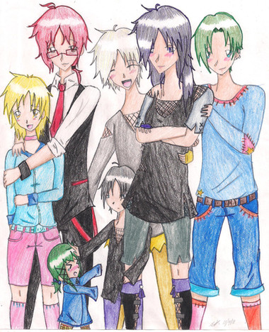 They're 4 sibblings from the same father but different mother. They're the bad guys in their story called 'Nocturne Painting' but all the plot is gonna be shown with the good guys ;D who are the true main characters.
