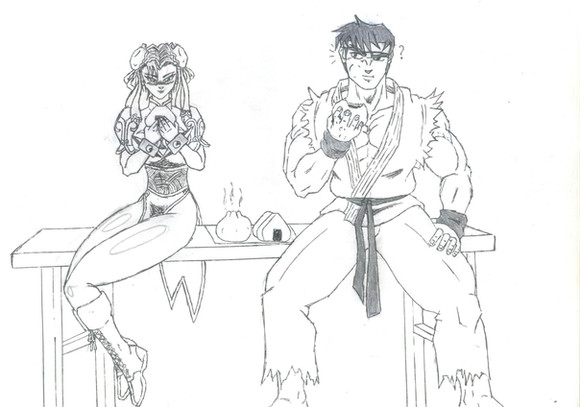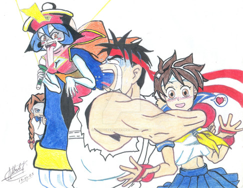 For some reason when I think in Ryu/Sakura I always think of it as something more physical, at least on the side of Sakura while Ryu is very blushed for the advances of the scholar girl (and he like her, just he is too shy and she is too young to let that happen).