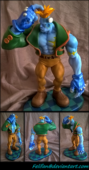 This is a 7" foot to head tall sculpt of Goliath from Gargoyles, crouching to about 5" and standing on a 3.5" base. He is primed for painting.Private commission.