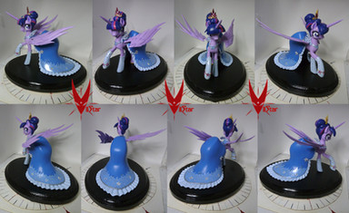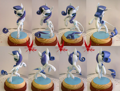 I commissioned this piece, and watched with amazement as she was sculpted by Vii. She's made of stainless steel and brass for the armature, epoxy for the thin bits (like her lower legs), and some sort of polymer clay for the rest.