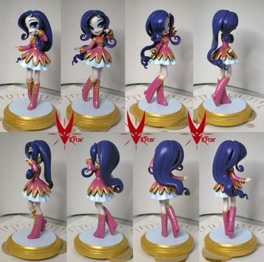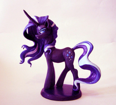 Since I was sick all week I didn't want to phone it in on my commissions so I made a Rarity instead.She stands 6" without her base and has pointback navettes as her cutie mark and a crystal in her eye. Her hair is brushed with metallic paint for extra shine! ALSO, SHE IS NOT FOR REMAKE and is OOAK!
