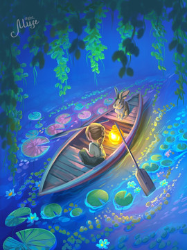 #boat #butterfly #illustration #magic #magiclight #pond #childrensbookillustration #digitalartist #digitalartwork #fairytale #lantern #rabbit #procreateart #ukrainianartist