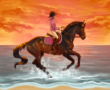 The third jump came into view. It was huge and flashy, with a giant puddle right in front of it. She pulled the reins back in panic.