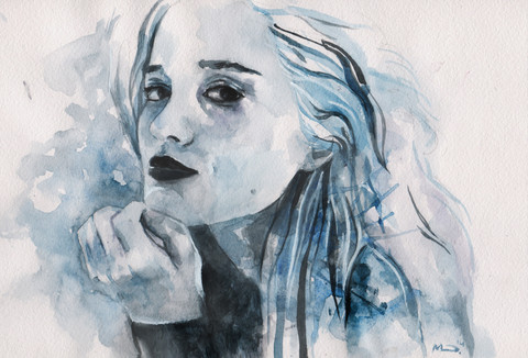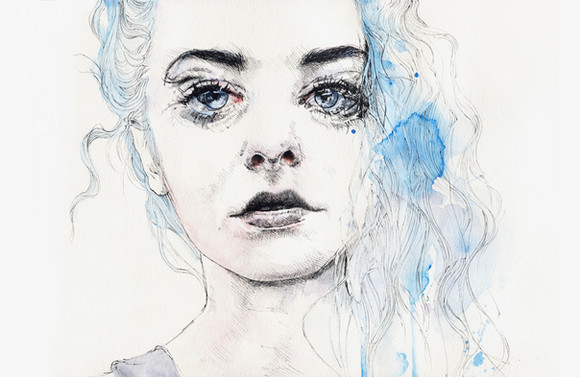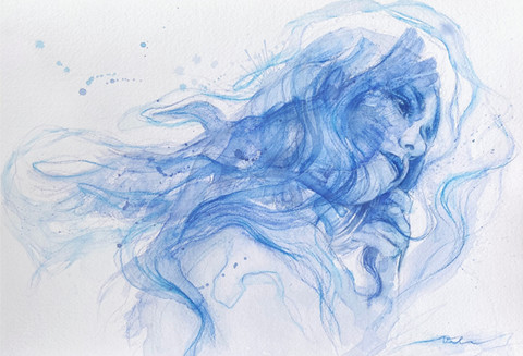 I like the delicateness of this, and how the abstraction is kind of subtle. I really like how you only drew a bit of her hair, and the rest is a light wash of paint. I'd like to try that myself sometime.