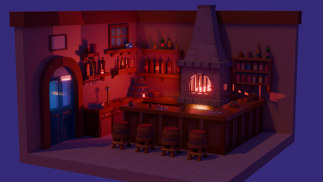 Medieval style, rpg inspired inn for winter travellers. Warm interior, great beer and minstrel music included!
